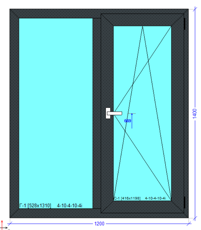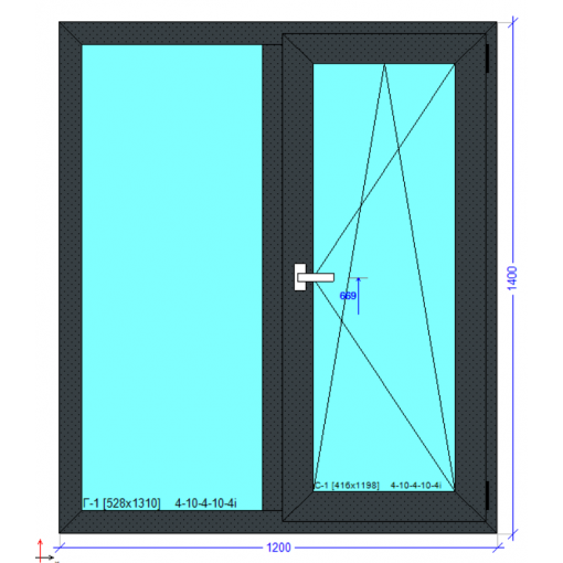 Розмір: 1200*1400 мм з однією стулкою поворотно-відкидною (за вашим вибором ліворуч або праворуч