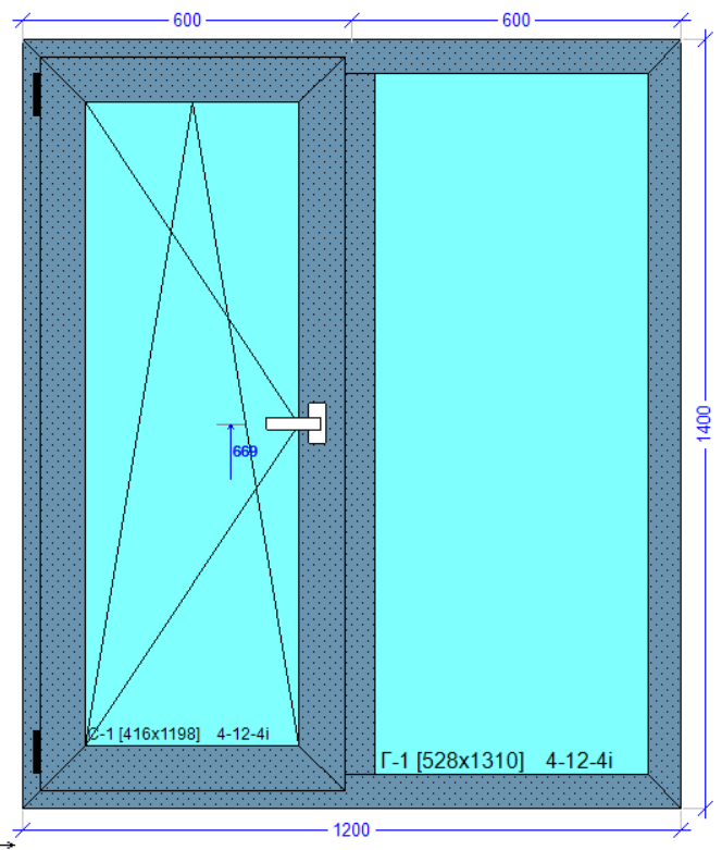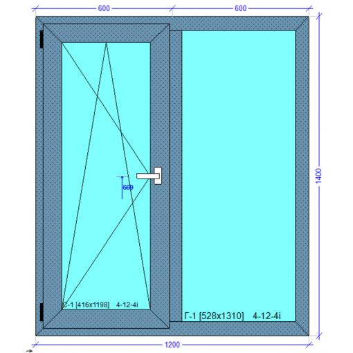 Вікно холодної алюмінієвої системи AluLight 50 1200*1400