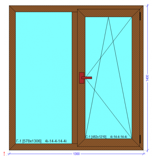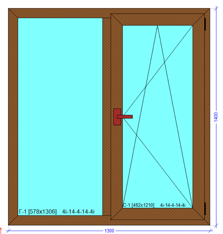 Детальні характеристики Вікно 1300x1400 мм, монтажна ширина 76мм, профіль WDS 76AD.