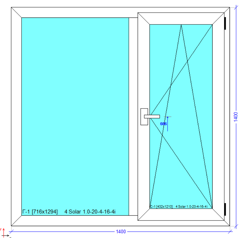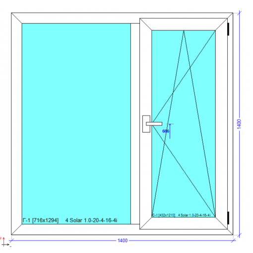 Розмір: 1400x1400 мм з однією стулкою, що відкривається, за вашим вибором відкривання- ліворуч або праворуч.
